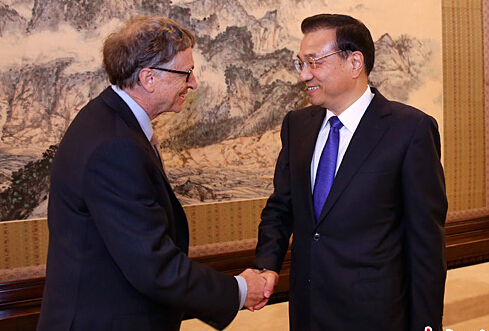 中國國務院總理李克強12日下午在中南海紫光閣會見來華訪問的比爾˙蓋茨。